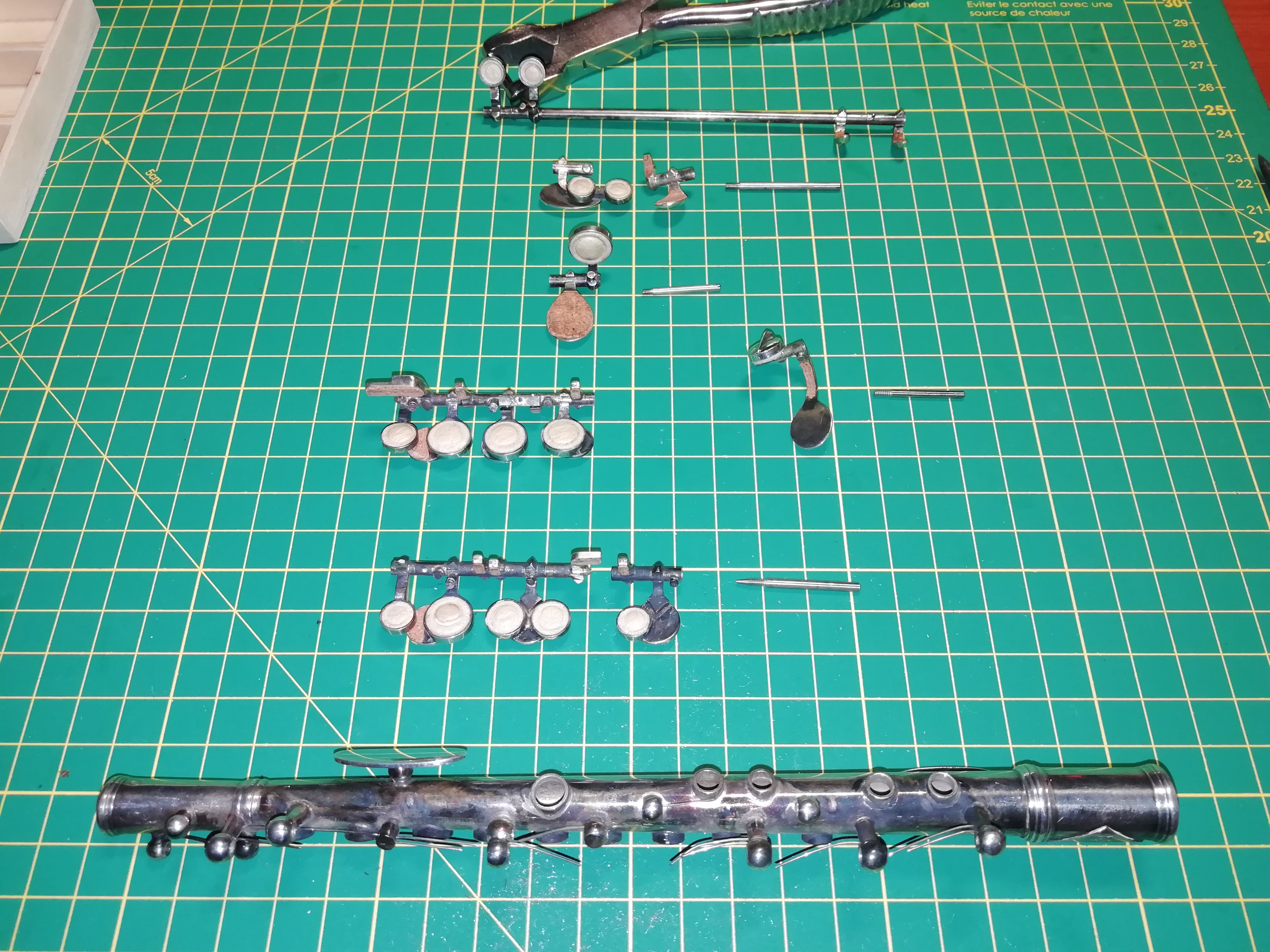 Galerie « Avant-Après » Quelques travaux déjà effectués… Selmer Super Action 80 Série II Couesnon – Marcel MOYSE « Monopole » Selmer 1669 (Maillechort argenté) Piccolo Noblet Jérôme Thibouville, époque fournisseur du Conservatoire de Paris Selmer Balanced Action